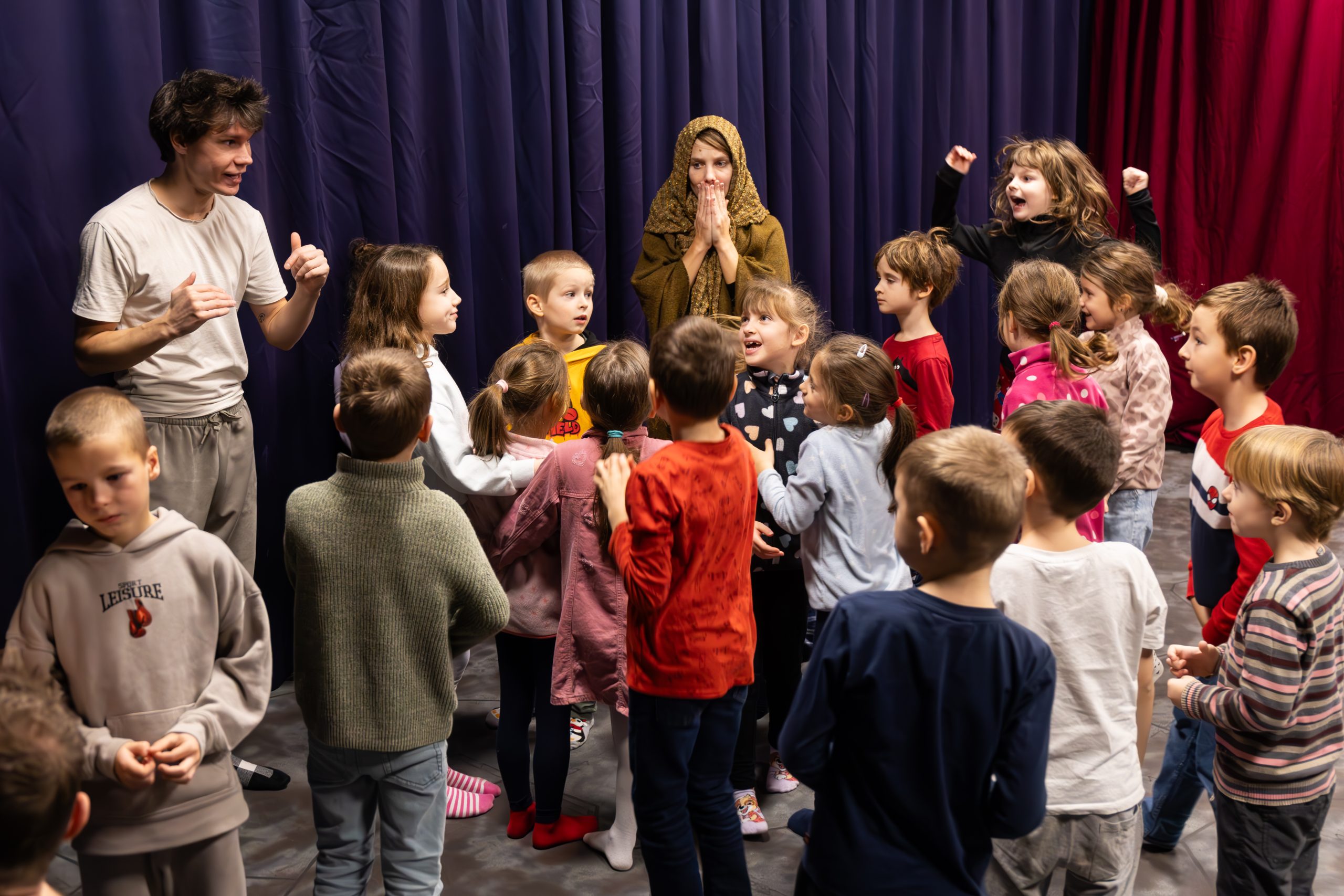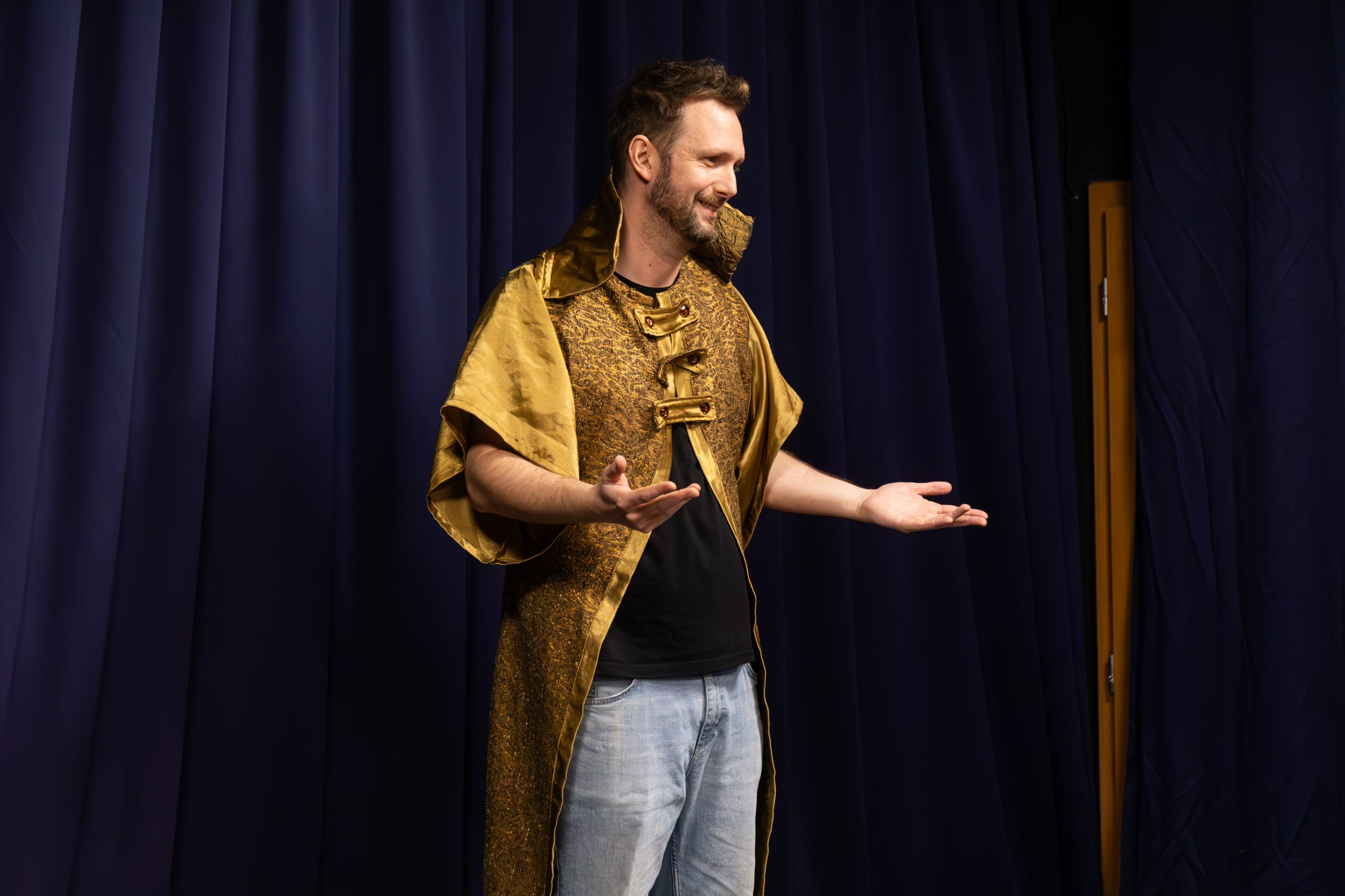 A foglalkozás a hatalom kérdéskörét vizsgálja. Andersen A császár új ruhája című meséjét használtuk alapul munkánkhoz, melyben a másfél évtized alatt kialakult hagyományok mellett új drámás és színházi formákkal is kísérletezünk. Történetünk ott kezdődik, ahol a mese véget ér: a börtönbe vetett, igazmondó fiú és társai útját követjük az öltözőszoba felé, ahol a császár hatalma romjain magából kikelve dühöng.